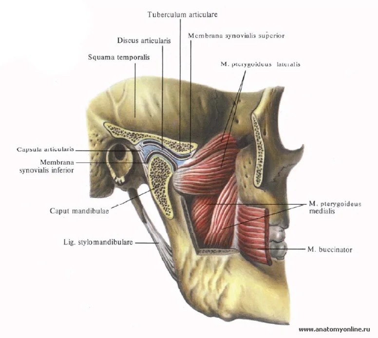 Поскольку самыми распространёнными проявлениями дисфункции ВНЧС являются щелчки и боль в суставе и мышцах, важно отметить роль жевательной мускулатуры развитии нарушений.